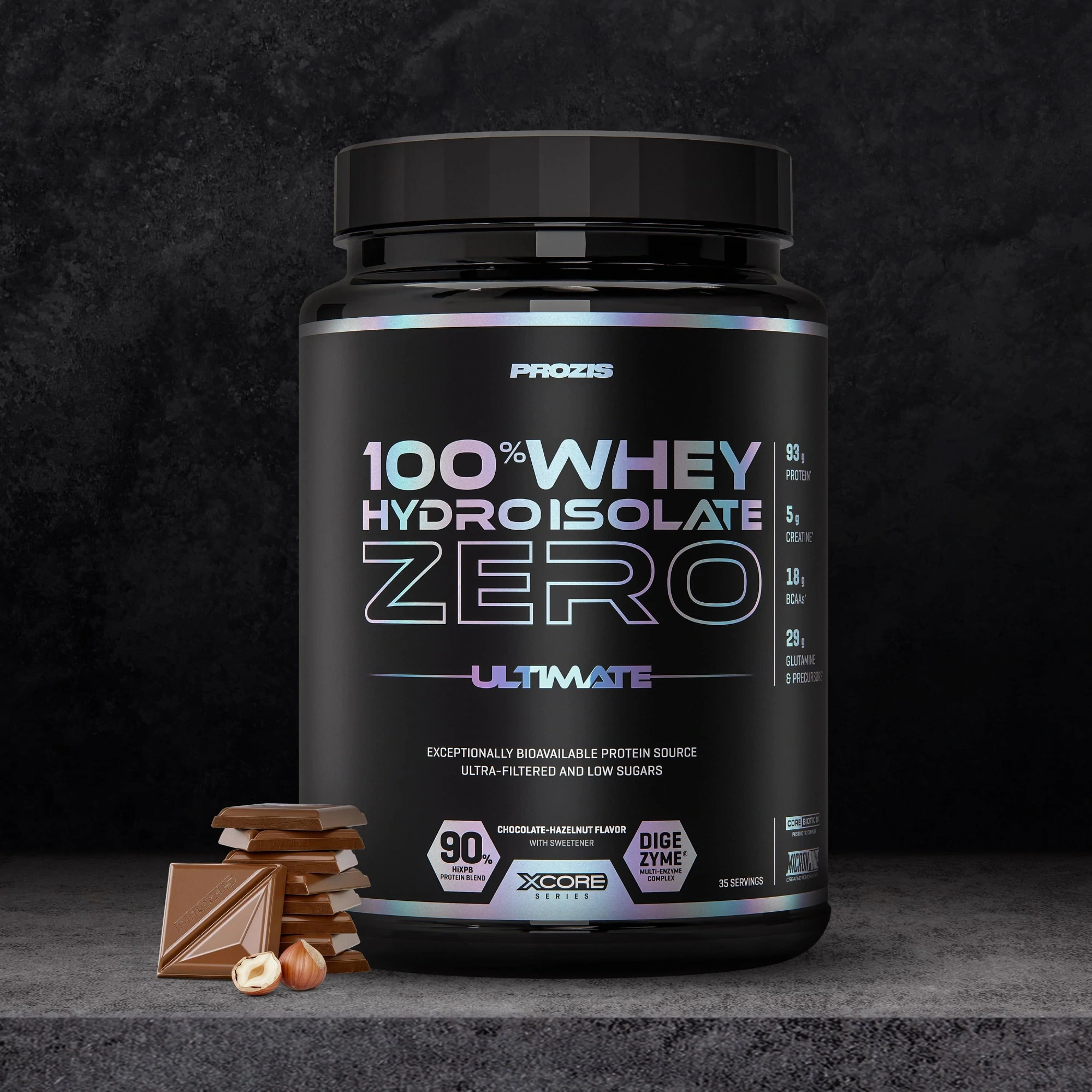 Protéine hydrolysée associant chocolat et noisette.
